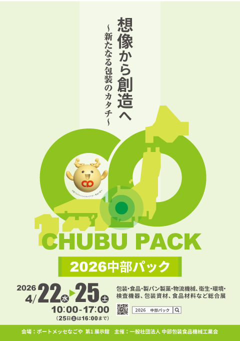 「2026 中部パック」は、“想像から創造へ ~新たなる包装のカタチ~”をテーマに、原料から加工・製造、包装、流通、資源再利用までを幅広く網羅する総合展示会です。