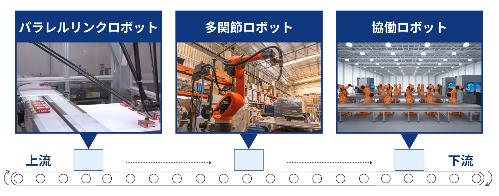 多関節ロボットの導入に適したコンベヤ