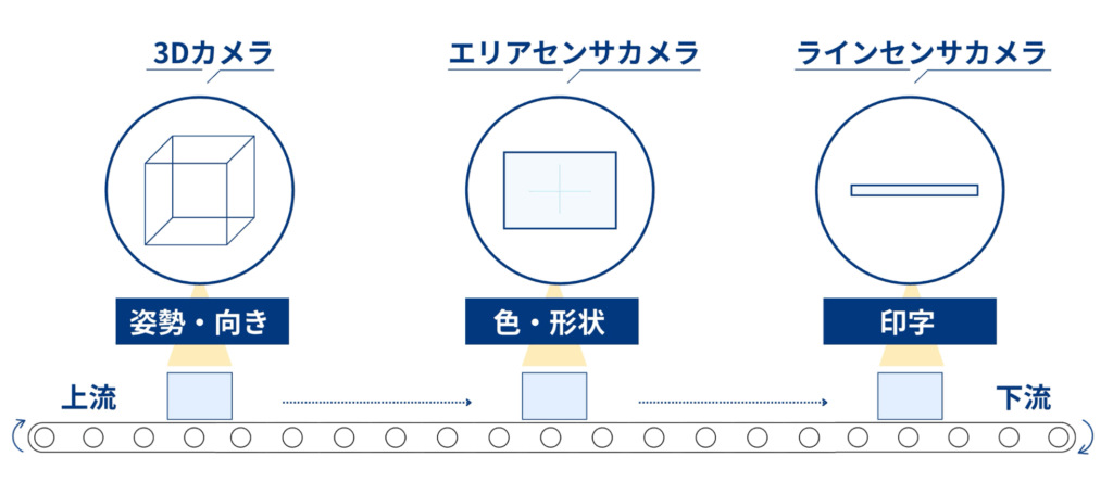 たとえば食品や医薬品、電子部品などのラベルのキズや印字不良、異物の検出など、精密な判断が求められる工程で使用されます。